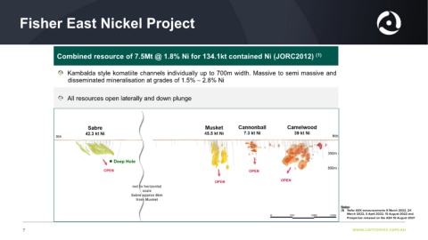 Combined resource of 7.5Mt @ 1.8% Ni for 134.1kt contained Ni (JORC2012) (1)