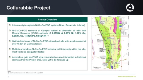 0.082% Co, 1.49g/t Pd, 0.85g/t Pt (1)