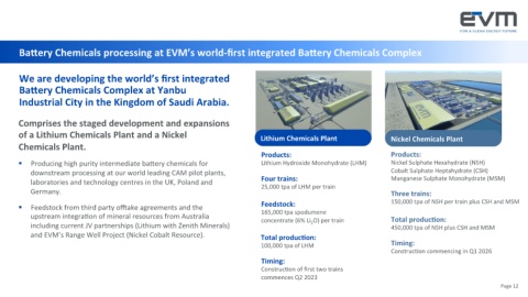 Ba=ery Chemicals processing at EVM’s world-first integrated Ba=ery Chemicals Complex
