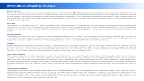 The informaGon contained, or referred to, in this presentaGon has been prepared by EV Metals Group plc (EVM or Company) for the benefit of stockbrokers, analysts and private and insGtuGonal investors, and