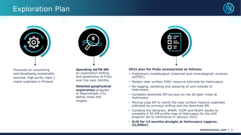 Focussed on uncovering Spending A$7M-9M 2022 plan for Pulju summarized as follows: