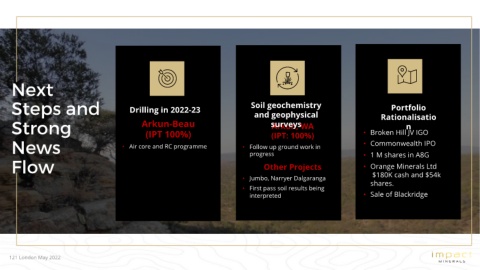 • First pass soil results being shares.