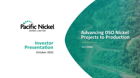 Advancing DSO Nickel Projects to Produc,on Investor Presenta,on ASX:PNM October 2022 1