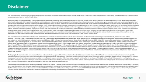 This presenta4on may contain certain statements and projec4ons provided by or on behalf of Pacific Nickel Mines Limited (“Pacific Nickel”) with respect to the an4cipated future undertakings. These forward-looking statements reflect
