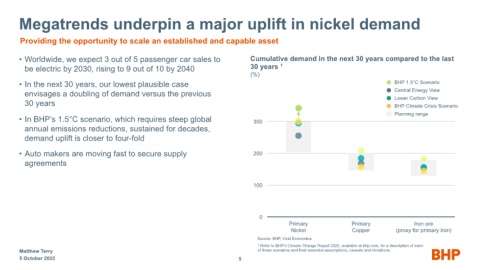 • In the next 30 years, our lowest plausible case BHP 1.5°C Scenario