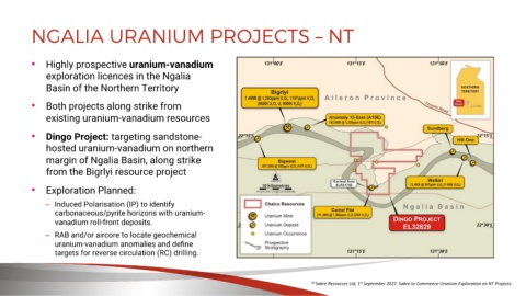 10 Sabre Resources Ltd, 1 September 2022. Sabre to Commence Uranium Explora9on on NT Projects.