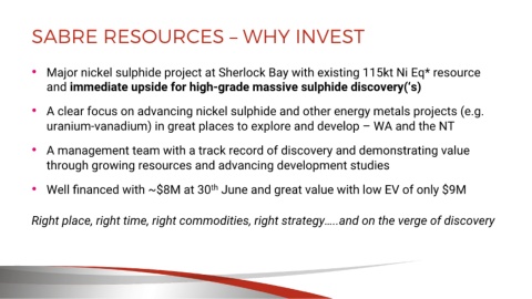 • A clear focus on advancing nickel sulphide and other energy metals projects (e.g.