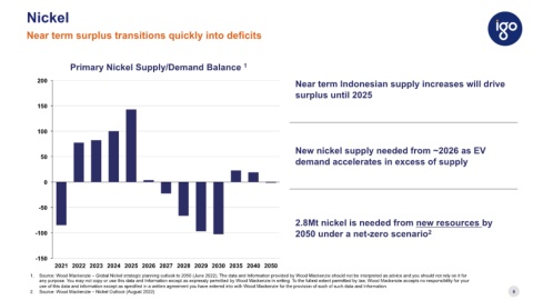 1. Source: Wood Mackenzie – Global Nickel strategic planning outlook to 2050 (June 2022). The data and Information provided by Wood Mackenzie should not be interpreted as advice and you should not rely on it for