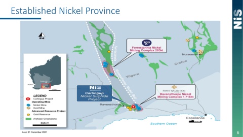 Established Nickel Province 6 As at 31 December 2021