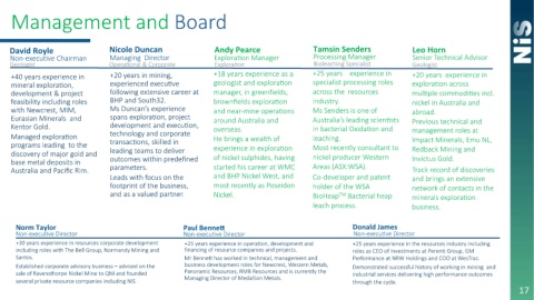 Non-execuHve Chairman Managing Director ExploraHon Manager Processing Manager Senior Technical Advisor