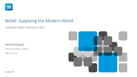 Nickel: Supplying the Modern World Australian Nickel Conference, 2022 Daniel Rodriguez Vice President, APAC CRU Group October 2022