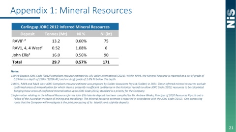 2. RAV1, RAV4 and RAV4 West JORC Compliant resource es>mate was prepared by Golder Associates Pty Ltd (Golder) in 2021. These Inferred mineral resources exclude