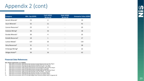 10. Refer ASX announcement: WIN 27/07/22 titled Widgie Nickel Quarterly Activities Report & Appendix 5B