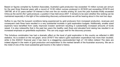 statistics. As is evident on the red graph, since 2016/17 the nation’s gold exploration expenditure has more than doubled,