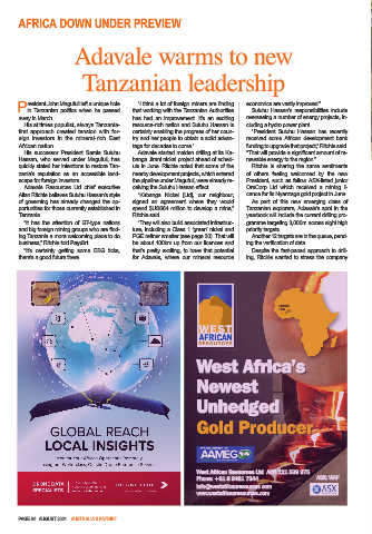 portunities for those currently established in spend $US664 million to develop a mine,” Tanzanian explorers, Adavale’s spot in the