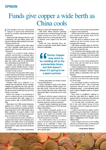 confusion and the price is currently reflect- Doctor Copper same part of the forward curve was trading