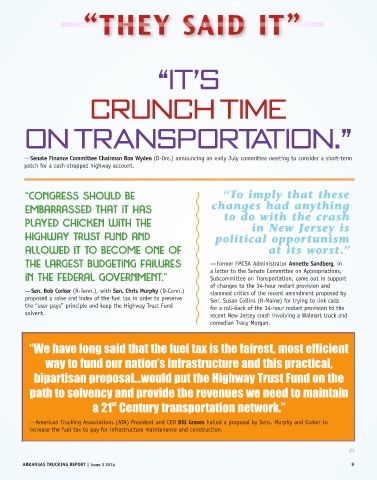 the “user pays” principle and keep the highway Trust Fund for a roll-back of the 34-hour restart provision to the