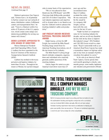 derek leAthers APPoInted to Ralph Garcia, a driver for ABF the industry’s image,” ATA President