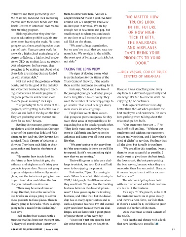 Truck Centers of Arkansas’ own techni- million/year in revenue. We are big iN the future