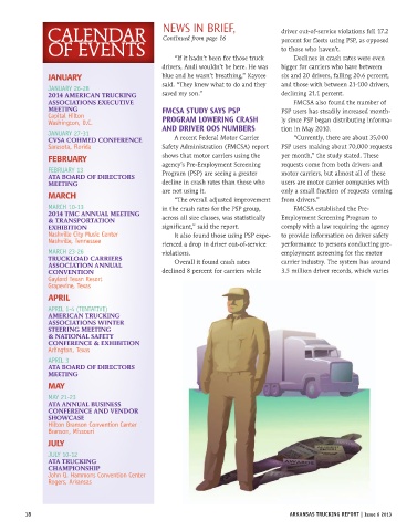 CALENDAR News iN brief, driver out-of-service violations fell 17.2