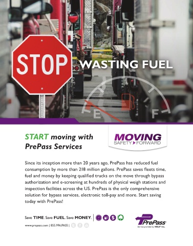 consumption by more than 218 million gallons. PrePass saves fleets time,