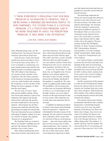 ogy and help veterans find trucking require experience,” Ray continues. “So come work for his or her trucking com-