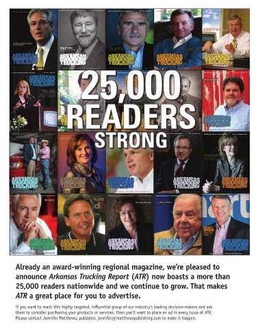 Award-Winning Regional Journal of the Arkansas Trucking Association Vol. 15, No. 3 • June 2010 • $4.95 Award-Winning Regional Journal of the Arkansas Trucking Association Vol. 14, No. 6 • December 2009 • $4.95 Award-Winning Regional Journal of the Arkansas Trucking Association Vol. 16, No. 2 • Issue 2 2011 • $4.95