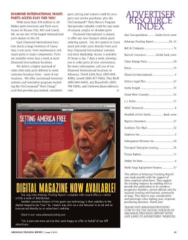 Each Diamond International loca- ordering system. Use this system to check Arkansas Trucking Report .....................34, 41