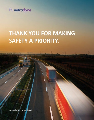 THANK YOU FOR MAKING SAFETY A PRIORITY. netradyne.com/driveri