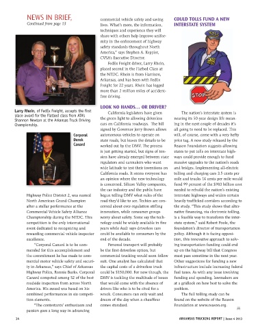 News iN brief, commercial vehicle safety and saving coUld TollS FUNd a NEW