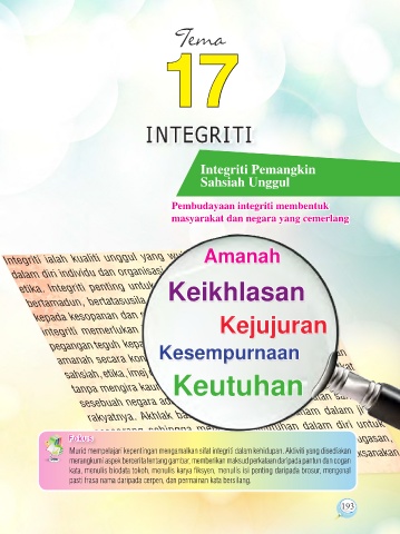 Murid mempelajari kepentingan mengamalkan sifat integriti dalam kehidupan. Aktiviti yang disediakan