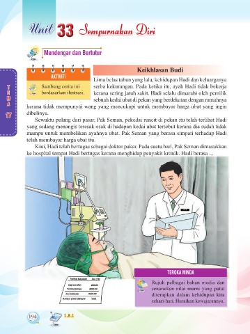 E berdasarkan ilustrasi. kerana sering jatuh sakit. Hadi selalu dimarahi oleh pemilik