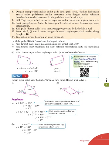 (b) hasil tambah sudut pedalaman dan sudut peluaran bersebelahan suatu sisi empat ialah