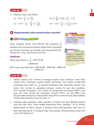 Wang simpanan Noriah ialah RM120. Dia menderma