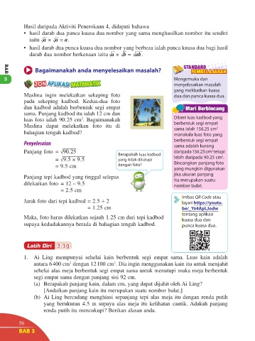 1. Ai Ling mempunyai sehelai kain berbentuk segi empat sama. Luas kain adalah