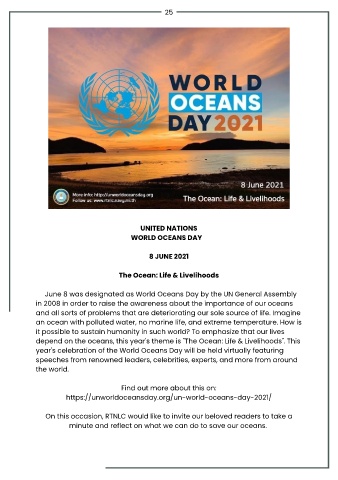 depend on the oceans, this year's theme is "The Ocean: Life & Livelihoods". This