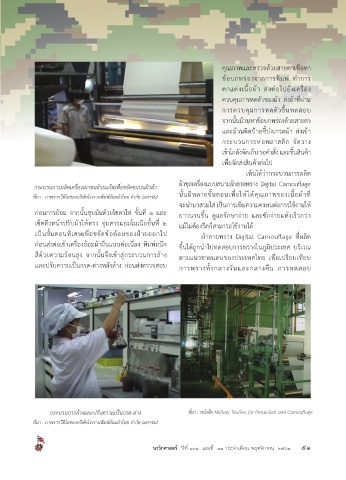 ก่อนส่งต่อเข้าเคร่องย้อมผ้าผืนแบบต่อเน่อง พิมพ์ผนึก ข้นได้ถูกนาไปทดสอบการพรางในภูมิประเทศ บริเวณ