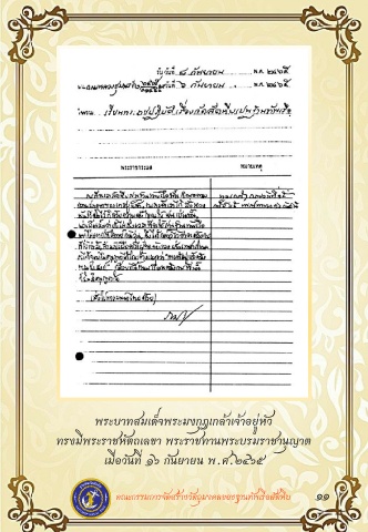 พระบาทสมเด็จพระมงกุฎเกล้าเจ้าอยู่หัว ุ ทรงมีพระราชหัตถเลขา พระราชทานพระบรมราชานญาต เมื่อวันที่ ๑๖ กันยายน พ.ศ.๒๔๖๕ คณะกรรมการจัดสร้างวัตถุมงคลของฐานทัพเรือสัตหีบ ๑๑