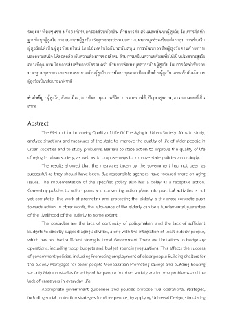 คำสำคัญ : ผู้สูงวัย, สังคมเมือง, การพัฒนาคุณภาพชีวิต, การขาดรายได้, ปัญหาสุขภาพ, การออกแบบที่เป็น