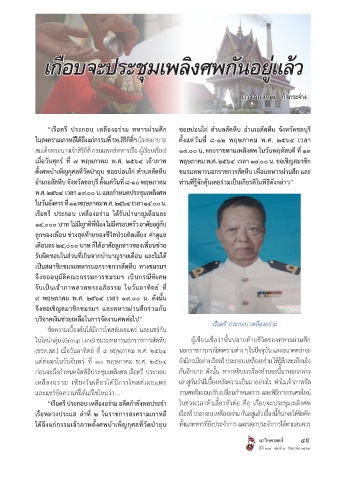 “เรือตร ประกอบ เหลืองอร่าม อดีตกาลังพลประจา ในช่วงเวลาหัวเล้ยวหัวต่อ คือ เกือบจะประชุมเพลิงศพ