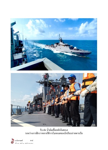 ้ ่ ั ิ ้ รบ-สง น�ามนเชือเพลงในทะเล ั ระหว่างการฝึกภาคทางใช้การในทะเลของนักเรียนจ่าทหารเรือ นาวิกศาสตร์ 34 ปีที่ ๑๐๕ เล่มที่ ๑๑ พฤศจิกายน ๒๕๖๕