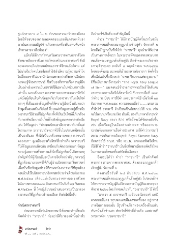 สาคัญทาให้ผู้เขียนมีแรงบันดาลใจท่จะนาข้อมูลความรู้ จึงสรปได้ว่า คาว่า “ราชนาว” เป็นคาศพท์