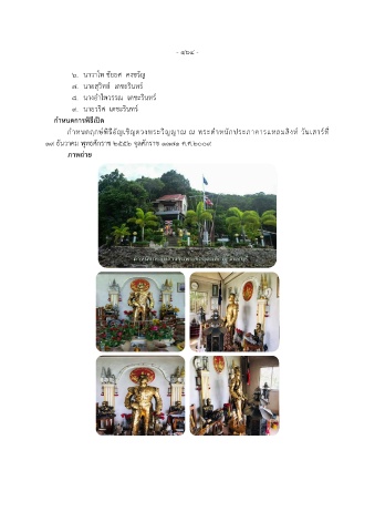 - ๑๖๔ - ๖. นาวาโท ชัยยศ คงขวัญ ๗. นายสุวิทย์ เดชะรินทร์ ๘. นางอ าไพวรรณ เดชะรินทร์ ๙. นายวริศ เดชะรินทร์ ก าหนดการพิธีเปิด ั ิ ก าหนดฤกษ์พธีอญเชิญดวงพระวิญญาณ ณ พระต าหนักประภาคารแหลมสิงห์ วันเสาร์ที่ ๑๙ ธันวาคม พุทธศักราช ๒๕๕๒ จุลศักราช ๑๓๗๑ ค.ศ.๒๐๐๙ ภาพถ่าย