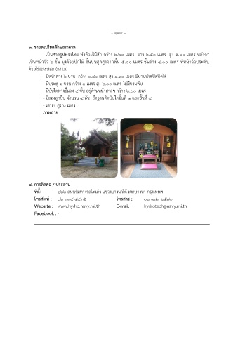 - มีประตู ๑ บาน กว้าง ๑ เมตร สูง ๒.๐๐ เมตร ไม่มีบานพับ