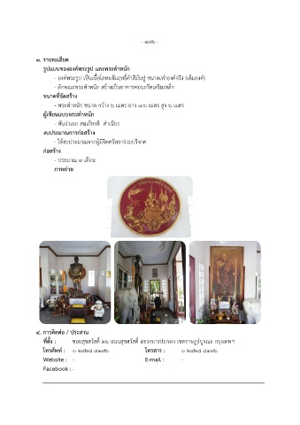 - องค์พระรูป เป็นเนื้อโลหะสัมฤทธิ์ด าสีมันปู ขนาดเท่าองค์จริง (เต็มองค์)