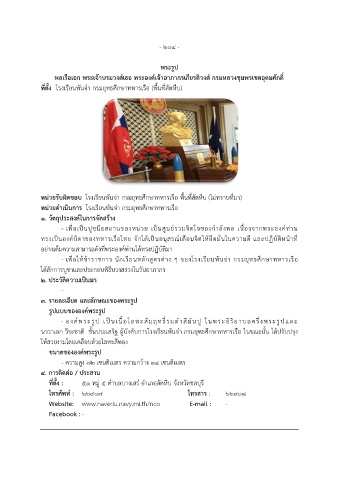 - เพอเป็นปูชนียสถานของหน่วย เป็นศูนย์รวมจิตใจของก าลังพล เนื่องจากพระองค์ท่าน