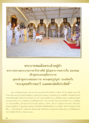 (ในขณะนน) และคณะ เฝ้าทูลละอองธุลีพระบาท ทูลเกล้าทูลกระหม่อมถวาย พระพุทธรูปบูชา กองทัพเรือ “พระพุทธศรีราชนาว ี