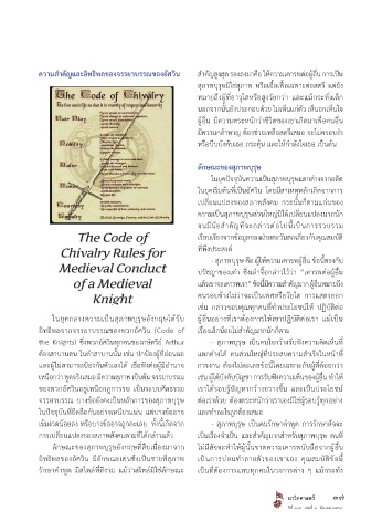 ควำมส�ำคัญและอิทธิพลของจรรยำบรรณของอัศวิน สาคัญสูงสุด รองลงมาคือ ให้ความเคารพต่อผู้อ่น การเป็น