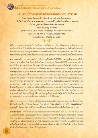วันที่ ๒๘ ธันวาคม เป็นวันคล้ายวันทำาพิธีพระบรมราชาภิเษก ซึ่งหลักฐานนี้ต้องโยนไปให้กองวรรณคดีและ