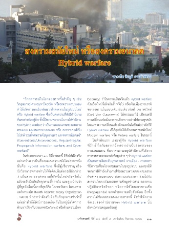 ไม่ปกติ รวมท้งสงครามข้อมูลข่าวสาร และสงครามไซเบอร์” Modern warfare หรอ Future warfare ในขณะน ้ ี